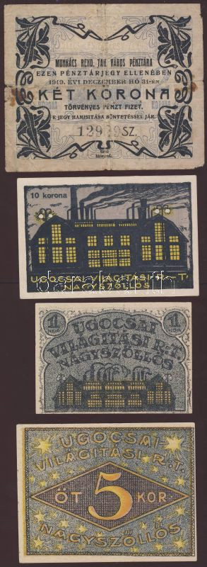 1919. Nagyszőllős 1K, 5K, 10K T:I,I- + Munkács 2K T:IV https://www.darabanth.com/de/78-Fernauktion/78.0/Numismatik/~296/1919-Nagyszollos-1K-5K-10K-TI-I-plus-Munkacs-2K-TIV~II158808