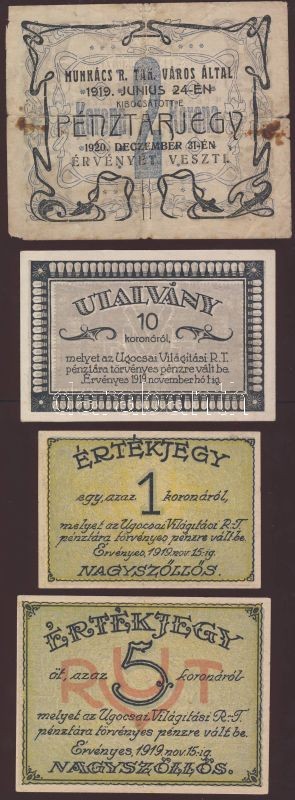 Beschreibung: 1919. Nagyszőllős 1K, 5K, 10K T:I,I- + Munkács 2K T:IV