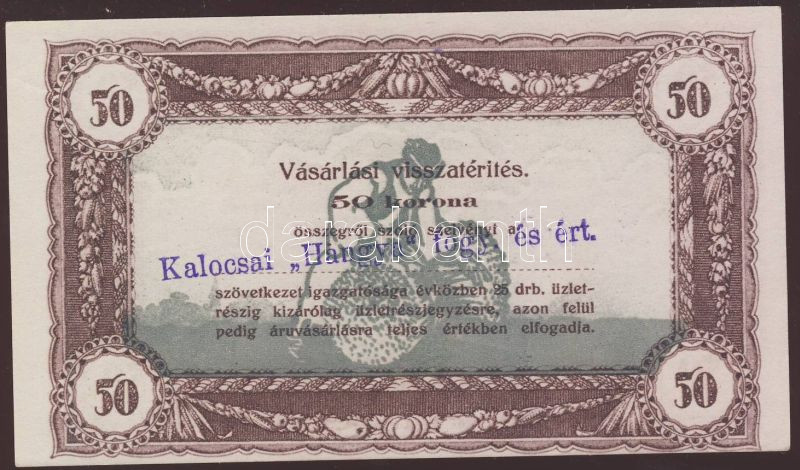 1920-as évek eleje 50K vásárlási visszatérítés lila "Kalocsai Hangya f... https://www.darabanth.com/de/78-Fernauktion/78.0/Numismatik/~296/1920-as-evek-eleje-50K-vasarlasi-visszaterites-lila-Kalocsai-Hangya-fogy-es-ert-belyeg~II158606