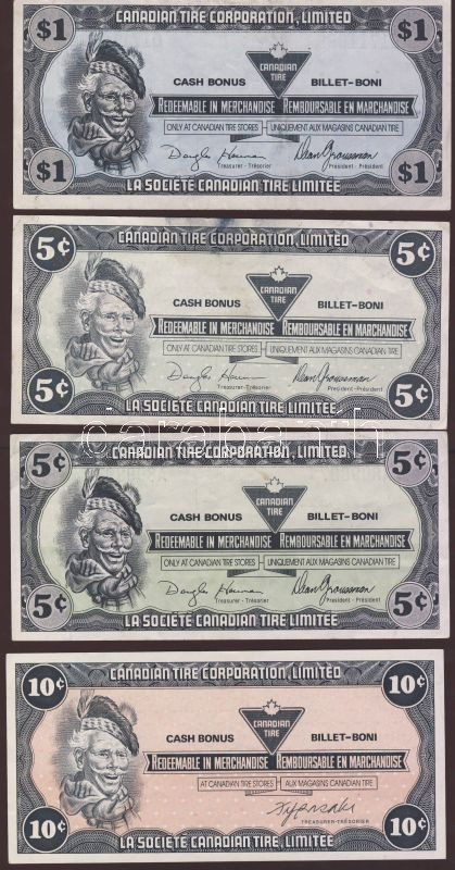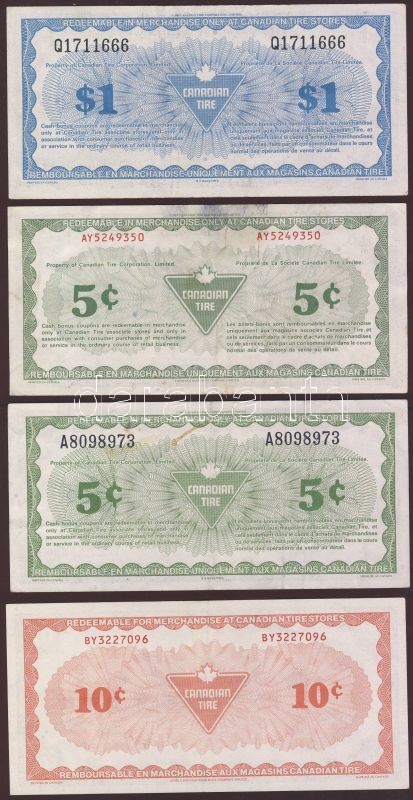 Beschreibung: Kanada 1980-as évek "Canadian Tire Corporation" készpénz bónok 5c,10c,25c,50c,1$ címletekben, összesen 9db T:I,II