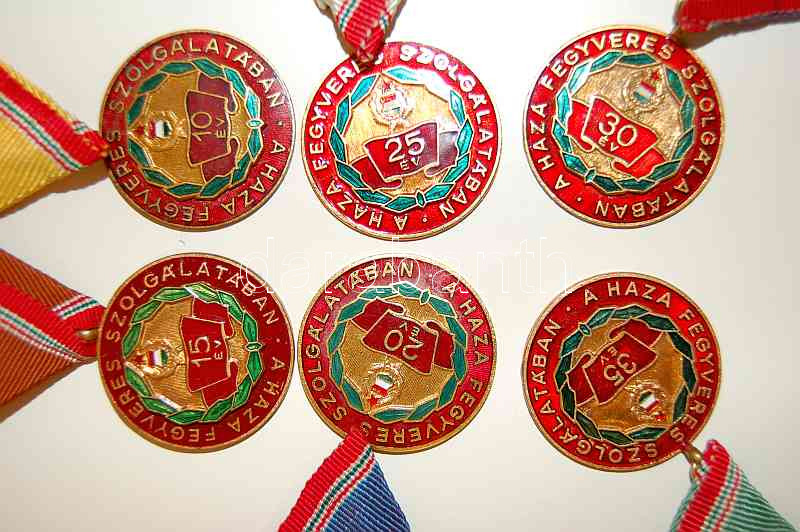 Beschreibung: "A haza fegyveres szolgálatáért" 6 klf zománcozott érem "10,15,20,25,30,35 év" szalaggal T:1