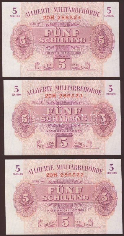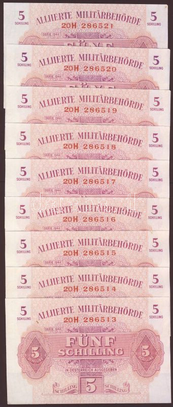 Beschreibung: Ausztria/nemzetközi megszállás 1944. 5 Sch (12x) egymásutáni sorszámokkal T:I, I-