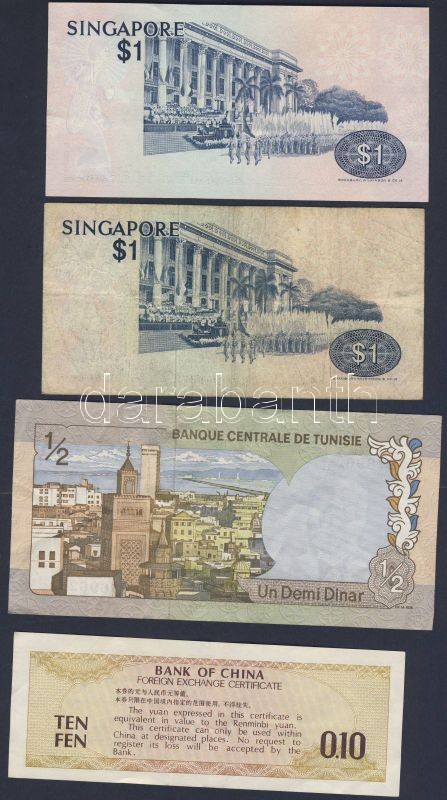Beschreibung: Jordánia 1975-92- 1D T:II + Tunézia 1972. 1/2D T:II + Szingapúr 1976. 1$ (2x) T:II,II+ + Kína 10F "Foreign exchange" T:II
