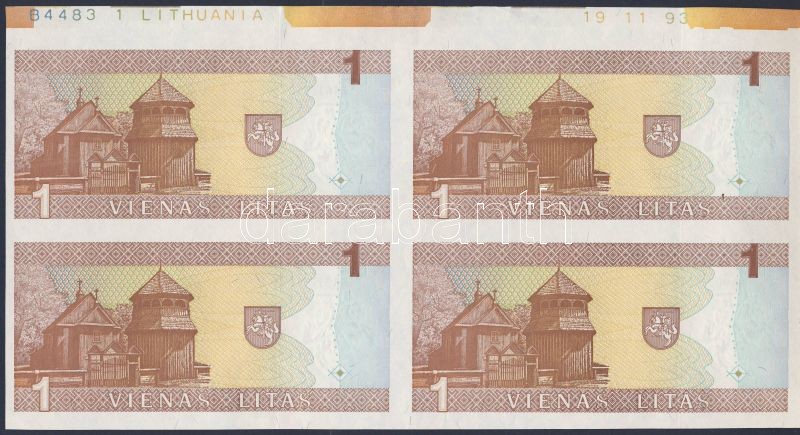 Litvánia 1994. 1L függőleges 4-es összefüggő tömbben T:I https://www.darabanth.com/de/78-Fernauktion/78.0/Numismatik/~310/Litvania-1994-1L-fuggoleges-4-es-osszefuggo-tombben-TI~II158504