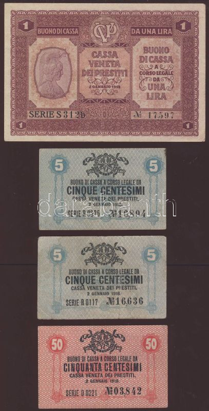 Olaszország/Velence/osztrák-magyar megszállás 1918. 5c (2c) ,50c, 1L T... https://www.darabanth.com/de/78-Fernauktion/78.0/Numismatik/~310/OlaszorszagVelenceosztrak-magyar-megszallas-1918-5c-2c-50c-1L-TI-II~II158938