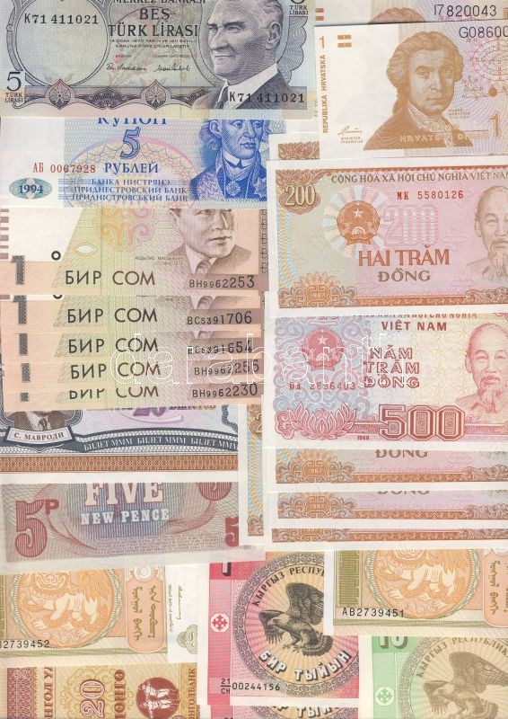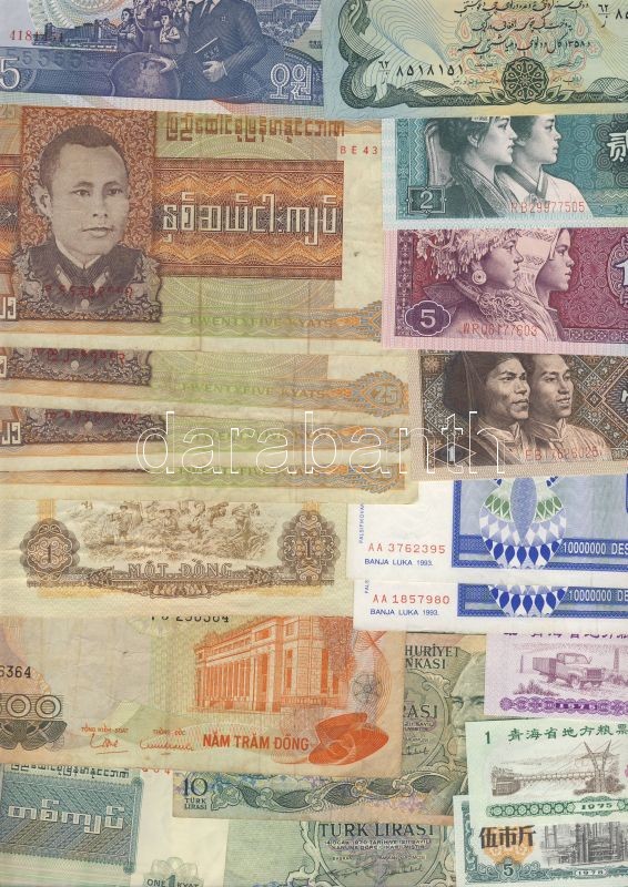 Beschreibung: Vegyes papírpénz tétel, 228db, egész világ, benne D.Reich, cári orosz, Kína égetési pénz T:I (többsége),II,III