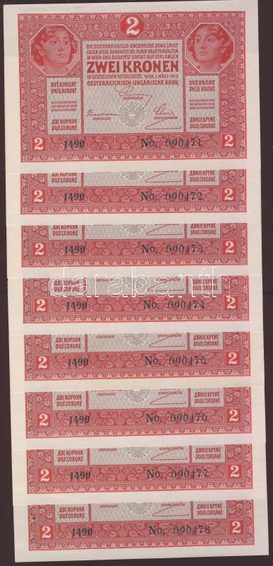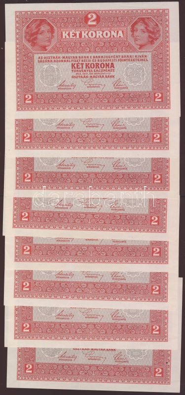 1917. 2K (8x) egymásutáni sorszámmal T:II+ Egyszer hajtva! https://www.darabanth.com/de/78-Fernauktion/78.0/Numismatik/~311/1917-2K-8x-egymasutani-sorszammal-TIIplus-Egyszer-hajtva~II158627