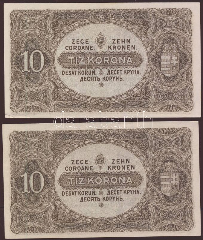Beschreibung: 1920. 10K (2x) egymásutáni sorszámokkal T:I,I-