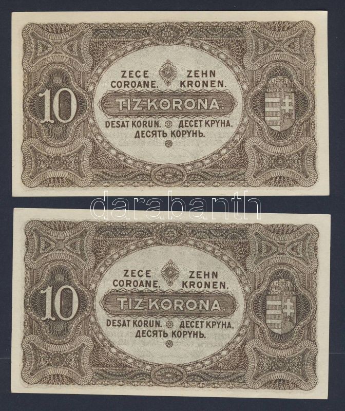 Beschreibung: 1920. 10K (2x) egymásutáni sorszámokkal T:I,I-