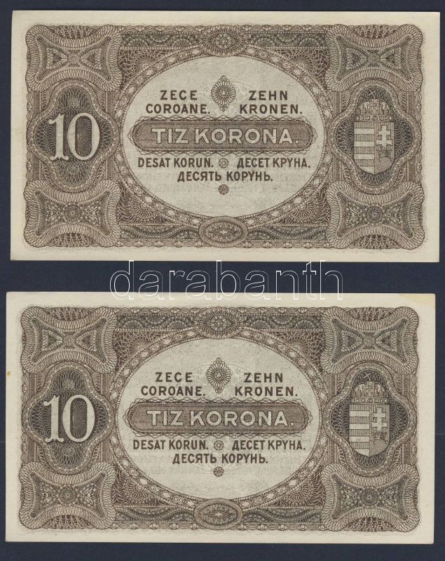 Beschreibung: 1920. 10K (2x) egymásutáni sorszámokkal T:I,I-