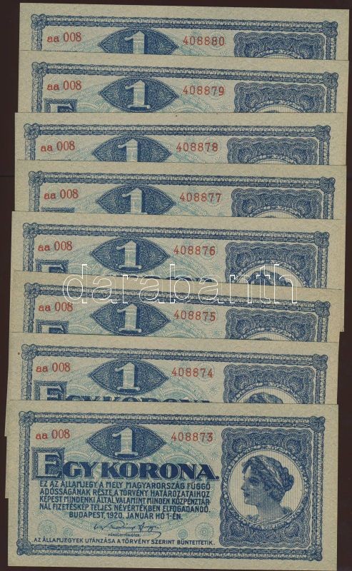 1920. 1K (20x) egymásutáni sorszámokkal "sorozatszámok és számok" erős... https://www.darabanth.com/de/78-Fernauktion/78.0/Numismatik/~311/1920-1K-20x-egymasutani-sorszamokkal-sorozatszamok-es-szamok-erosen-ferden-nyomva-TI~II157468