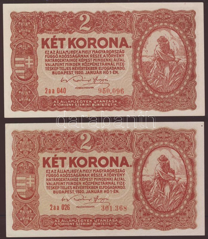1920. 2K (2x) "."-tal, egyiken lemezhiba a "."-nál és a "0"-nál T:I https://www.darabanth.com/de/78-Fernauktion/78.0/Numismatik/~311/1920-2K-2x-tal-egyiken-lemezhiba-a-nal-es-a-0-nal-TI~II158590