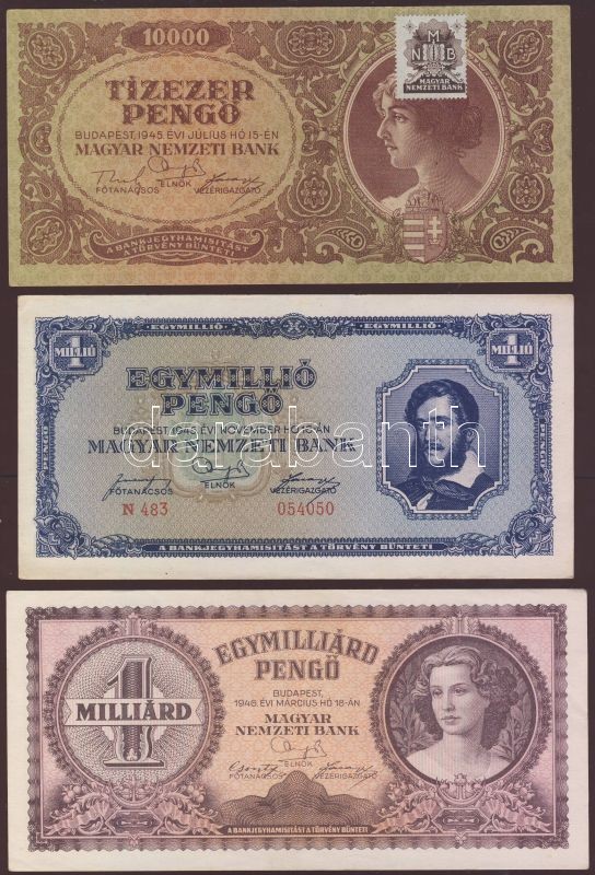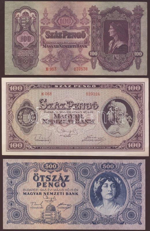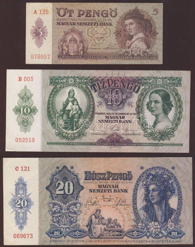 Beschreibung: 1930-1945. Pengő sor 9klf bankjegy T:I(többsége), I-