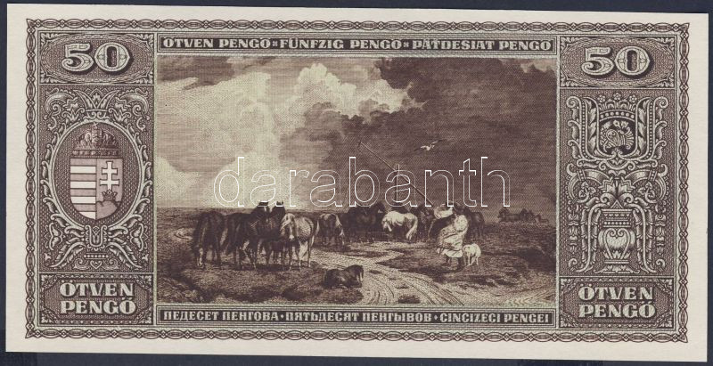 1945. 50P csak hátlapi nyomat T:I https://www.darabanth.com/de/78-Fernauktion/78.0/Numismatik/~311/1945-50P-csak-hatlapi-nyomat-TI~II159032