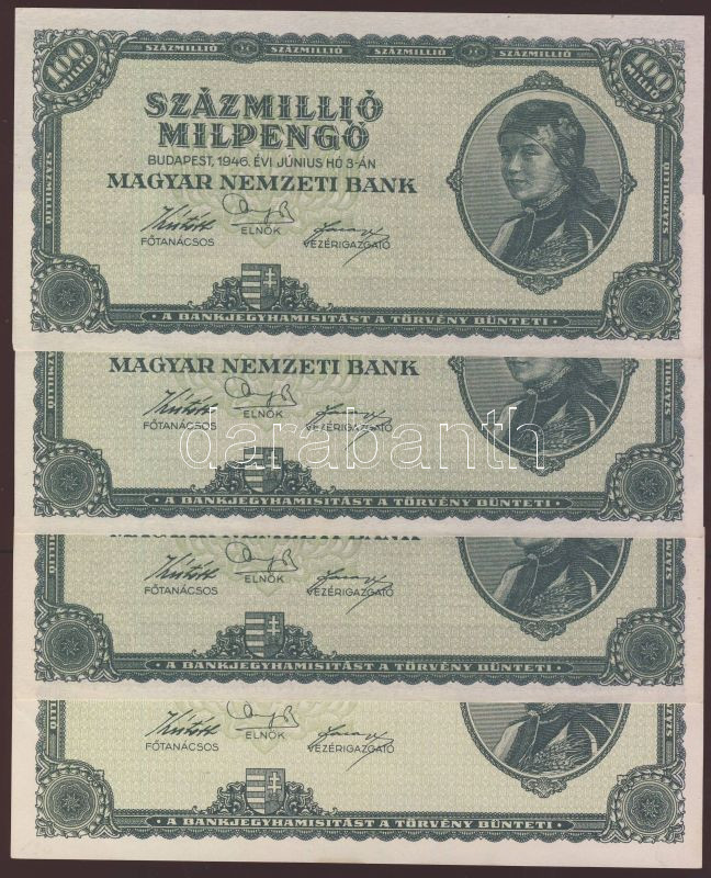 Beschreibung: 1946. 100.000.000Milpengő (4x) T:I