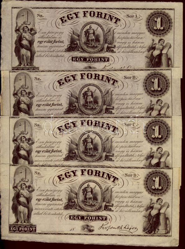 Emigrációs kiadás "Kossuth bankók" 18.. 1Ft A,B,C,D 4klf sorozatbetűve... https://www.darabanth.com/de/78-Fernauktion/78.0/Numismatik/~311/Emigracios-kiadas-Kossuth-bankok-18-1Ft-A-B-C-D-4klf-sorozatbetuvel-TI~II156000
