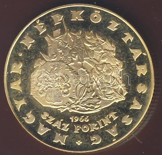 1966. 100Ft Au "Zrínyi" 8,41g T:P Csak 3300db! https://www.darabanth.com/de/78-Fernauktion/78.0/Numismatik/~313/1966-100Ft-Au-Zrinyi-8-41g-TP-Csak-3300db~II158734