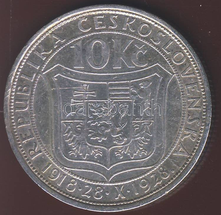 Beschreibung: Csehszlovákia 1928. 10K Ag "Függetlenségi évforduló" T:2