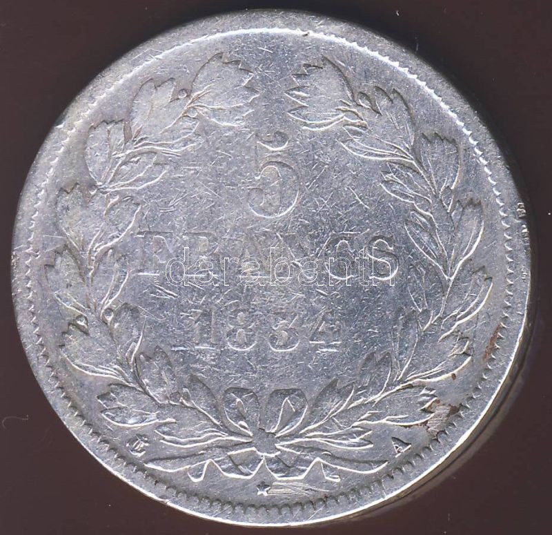 Franciaország 1834. 5Fr Ag I. Lajos Fülöp T:3 https://www.darabanth.com/de/78-Fernauktion/78.0/Numismatik/~316/Franciaorszag-1834-5Fr-Ag-I-Lajos-Fulop-T3~II158868