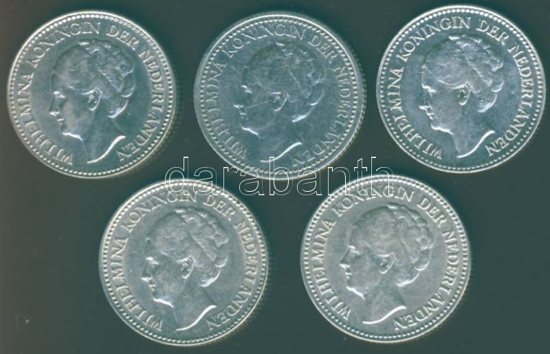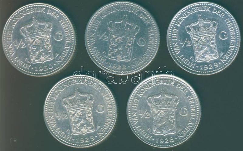 Hollandia 1922-30. 1/2G Ag (5x) T:2,3 https://www.darabanth.com/de/78-Fernauktion/78.0/Numismatik/~316/Hollandia-1922-30-12G-Ag-5x-T2-3~II156352