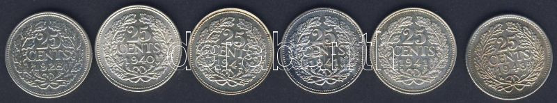 Beschreibung: Hollandia 1928-43. 25c Ag (6x) 4klf évszámmal T:2,3