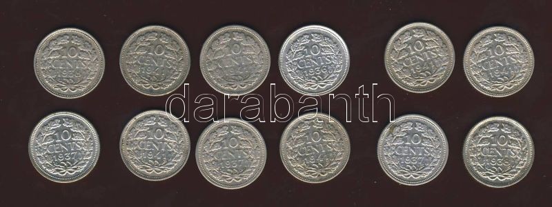 Hollandia 1936-41. 10c Ag (12x) 4klf évszámmal T:2,3 https://www.darabanth.com/de/78-Fernauktion/78.0/Numismatik/~316/Hollandia-1936-41-10c-Ag-12x-4klf-evszammal-T2-3~II157399