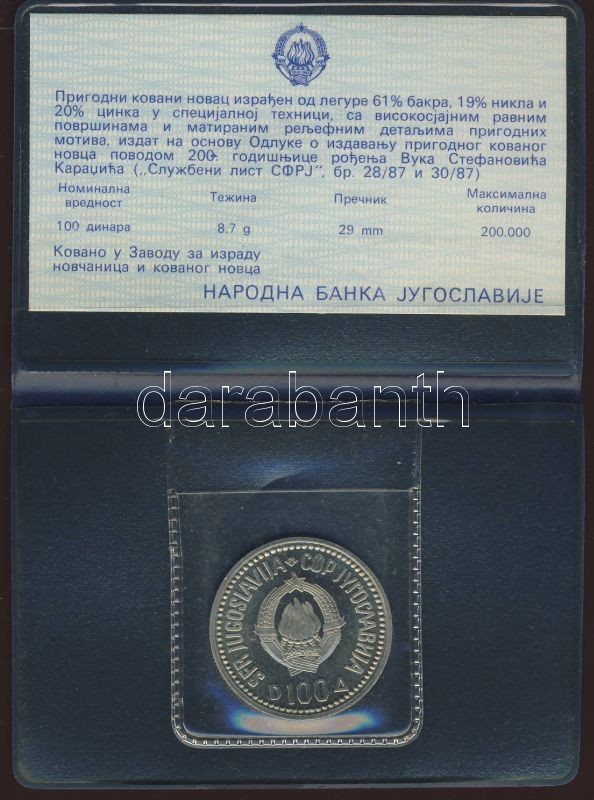 Beschreibung: Jugoszlávia 1985. 100D "Karajich" T:PP Eredeti dísztokban, tanúsítvánnyal!