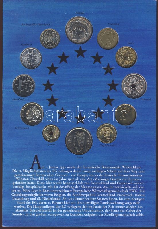 Modern díszkiadás "Egyesült Európa" 12 ország érméi, szettben T:1 https://www.darabanth.com/de/78-Fernauktion/78.0/Numismatik/~316/Modern-diszkiadas-Egyesult-Europa-12-orszag-ermei-szettben-T1~II157447