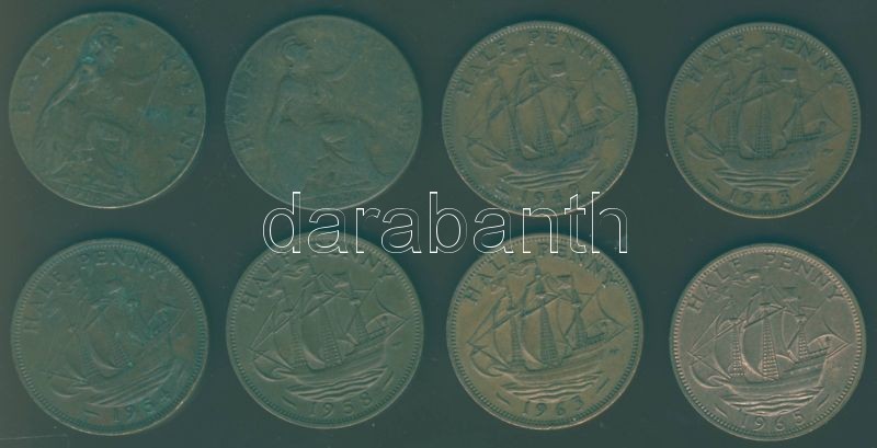 Nagy-Britannia 1918-1965. 1/2P (8x) klf évszámokkal T:2,2/3,3,3/4 https://www.darabanth.com/de/78-Fernauktion/78.0/Numismatik/~316/Nagy-Britannia-1918-1965-12P-8x-klf-evszamokkal-T2-23-3-34~II156720