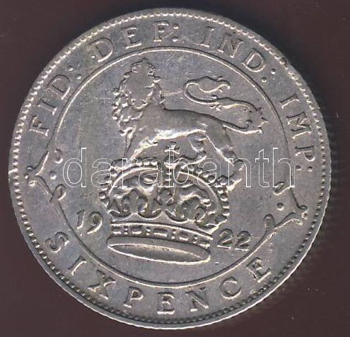 Nagy-Britannia 1922. 6P Ag "széles perem" T:3+ https://www.darabanth.com/de/78-Fernauktion/78.0/Numismatik/~316/Nagy-Britannia-1922-6P-Ag-szeles-perem-T3plus~II158803
