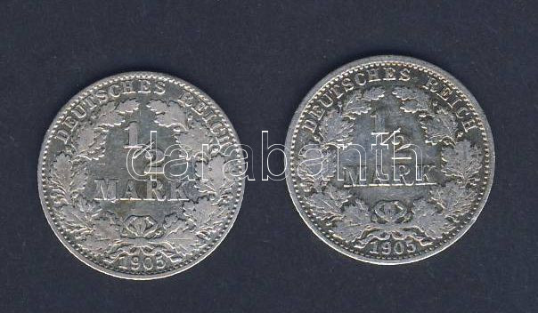 Német Birodalom/Császárság 1905A 1/2M Ag + 1905D 1/2M Ag T:3+ https://www.darabanth.com/de/78-Fernauktion/78.0/Numismatik/~316/Nemet-BirodalomCsaszarsag-1905A-12M-Ag-plus-1905D-12M-Ag-T3plus~II157874