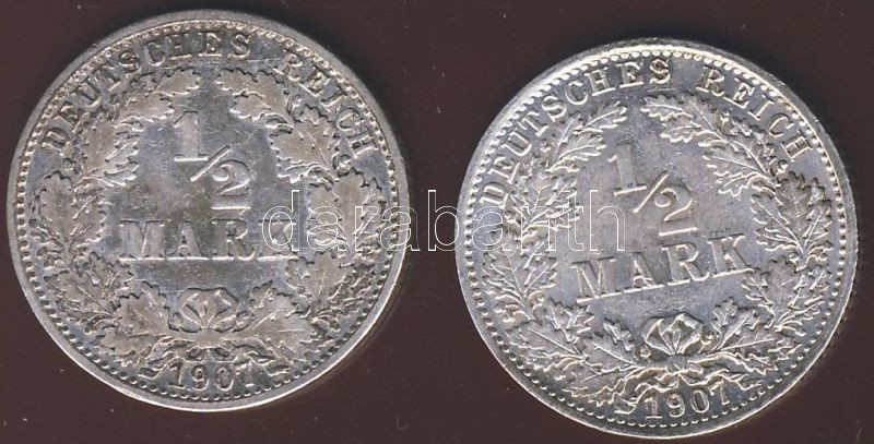 Német Birodalom/Császárság 1907A 1/2M Ag (2x) T:2+,3+ https://www.darabanth.com/de/78-Fernauktion/78.0/Numismatik/~316/Nemet-BirodalomCsaszarsag-1907A-12M-Ag-2x-T2plus-3plus~II157877