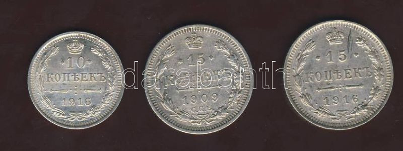 Beschreibung: Oroszország 1909+1916. 15k Ag + 1916. 10k Ag T:2,3