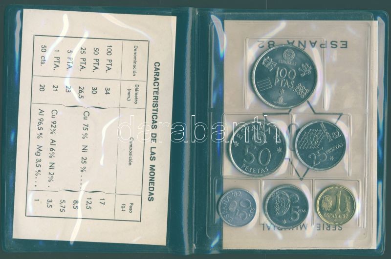 Spanyolország 1982. "Labdarugó VB" szett 6 klf db 0,50P-100P T:1 https://www.darabanth.com/de/78-Fernauktion/78.0/Numismatik/~316/Spanyolorszag-1982-Labdarugo-VB-szett-6-klf-db-0-50P-100P-T1~II156884