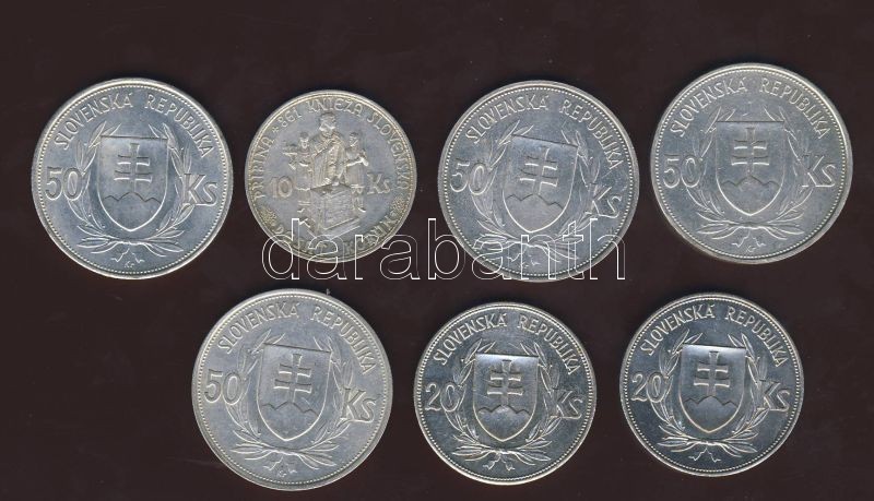 1944. 10K Ag (1x) + 50K Ag (4x) T:2,... https://www.darabanth.com/de/78-Fernauktion/78.0/Numismatik/~316/Szlovakia-1939-20K-Ag-2x-T2---1944-10K-Ag-1x-plus-50K-Ag-4x-T2-3-k-~II157259