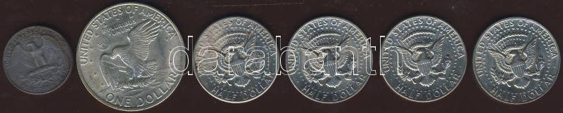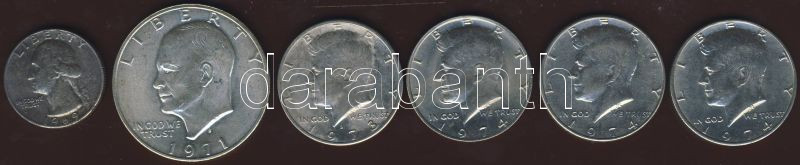 Beschreibung: USA 1969. 1/4$ "Franklin" T:4 + 1971. 1$ "Eisenhower" T:3 + 1973. 1/2$ "Kennedy" T:3 + 1974. 1/2$ (3x) "Kennedy" T:2/3,3 Összesen 6db!
