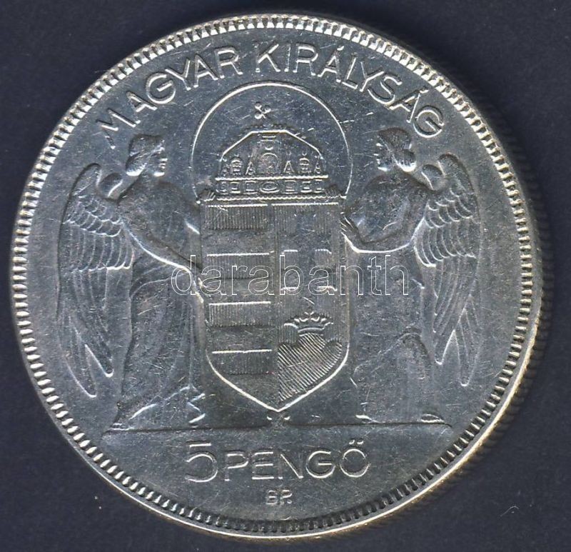 1930. 5P Ag "Horthy jobbra" T:2 https://www.darabanth.com/de/78-Fernauktion/78.0/Numismatik/~317/1930-5P-Ag-Horthy-jobbra-T2~II158357