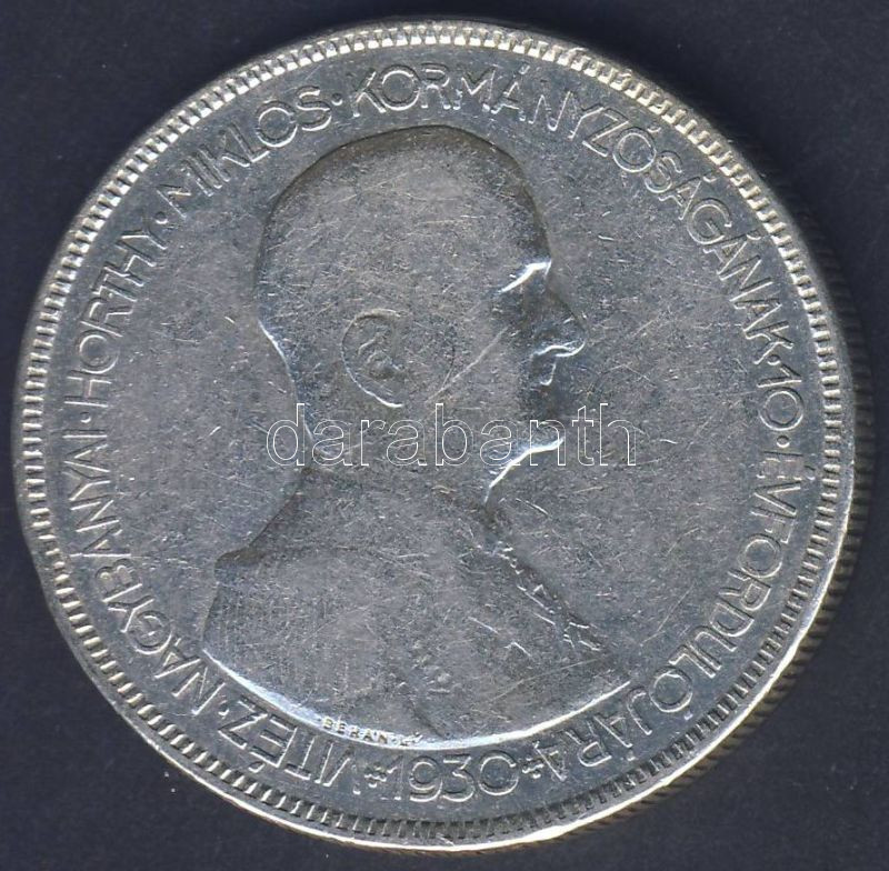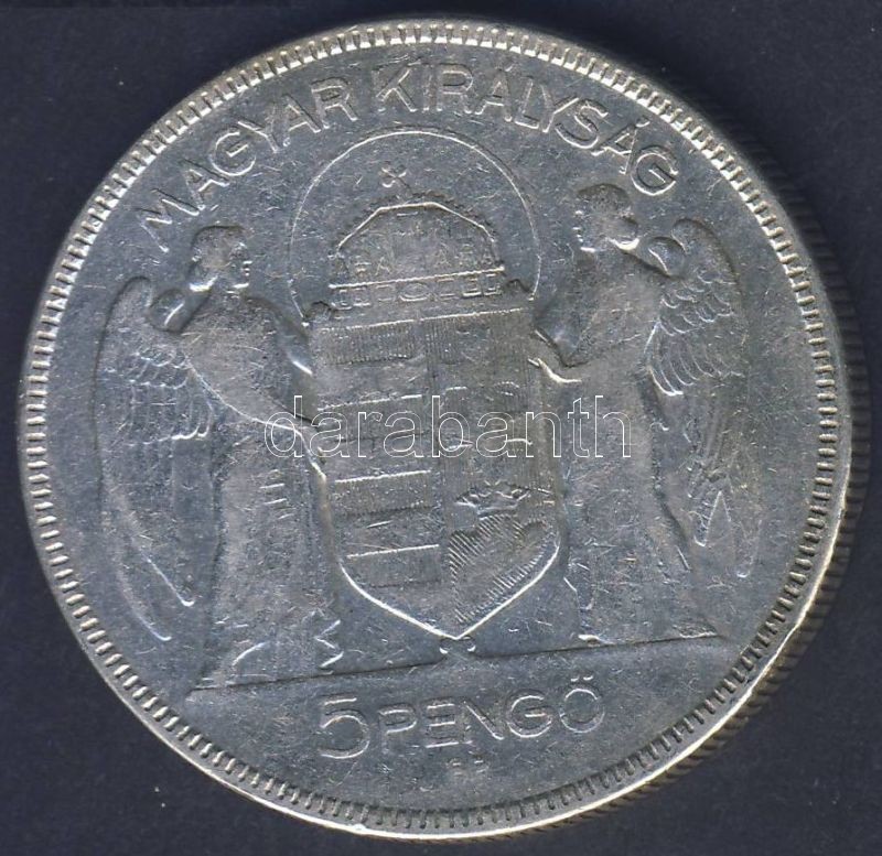 1930. 5P Ag "Horthy jobbra" T:3 https://www.darabanth.com/de/78-Fernauktion/78.0/Numismatik/~317/1930-5P-Ag-Horthy-jobbra-T3~II158364