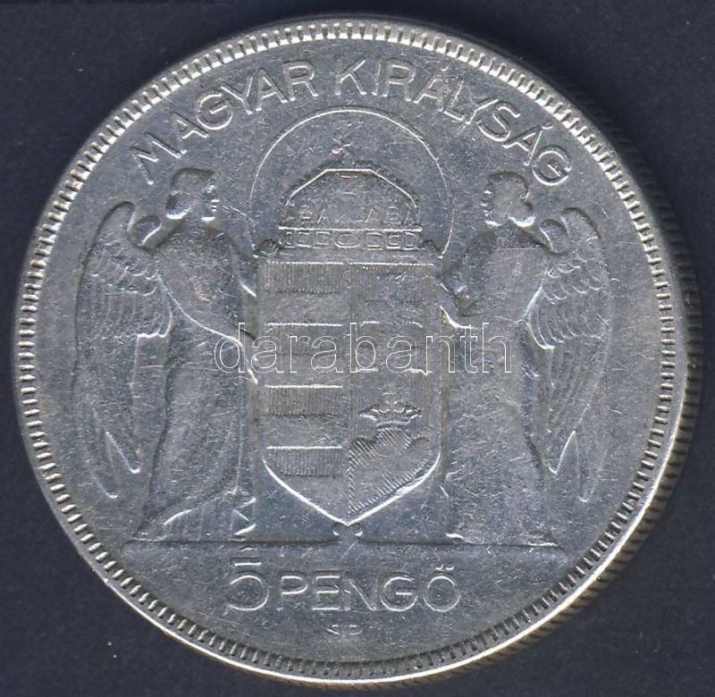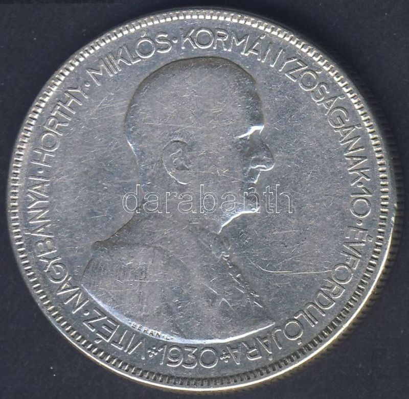 1930. 5P Ag "Horthy jobbra" T:3 https://www.darabanth.com/de/78-Fernauktion/78.0/Numismatik/~317/1930-5P-Ag-Horthy-jobbra-T3~II158365