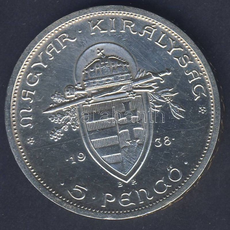 1938. 5P Ag "Szt.István" T:1- https://www.darabanth.com/de/78-Fernauktion/78.0/Numismatik/~317/1938-5P-Ag-SztIstvan-T1-~II158492