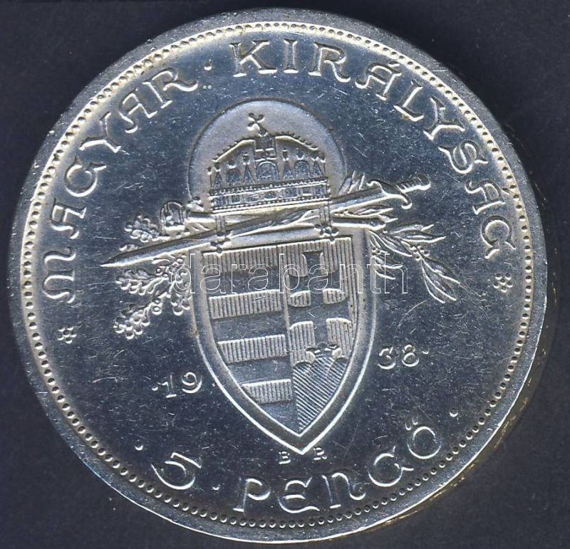 Beschreibung: 1938. 5P Ag "Szt.István" T:1/2 parányi ph.