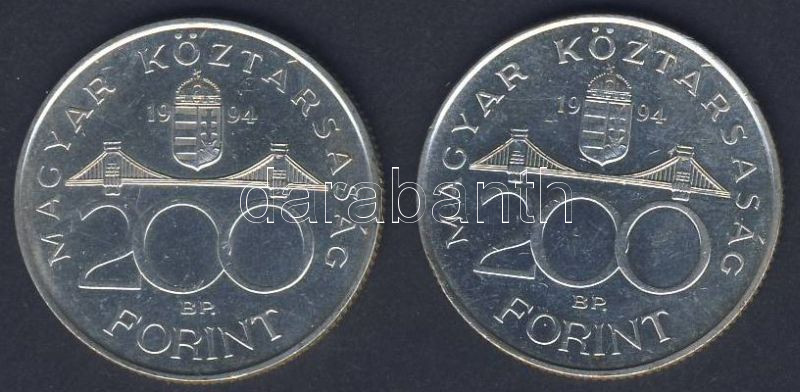 Beschreibung: 1994. 200Ft Ag (2x) "Deák" T:BU