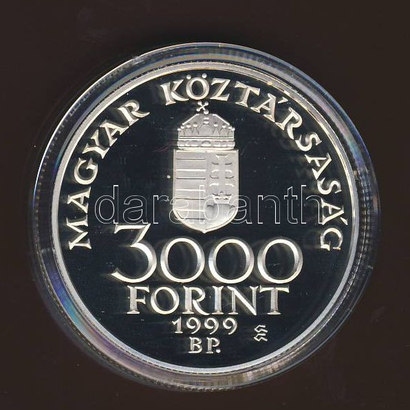 Beschreibung: 1999. 3000Ft Ag "Integráció az EU-ba - EURO III" T:PP Dísztokban, tanúsítvánnyal!