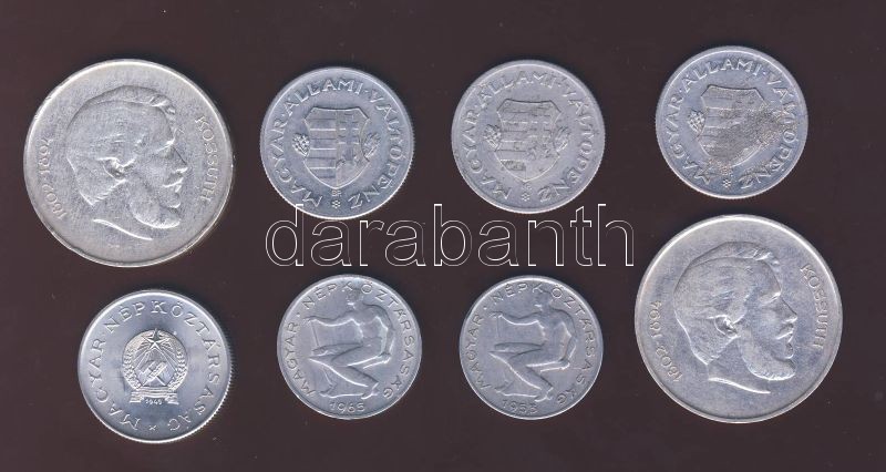 Beschreibung: 50f 1953,1956 + 1Ft "Kossuth címer" 1946,1947,1949 + 1Ft 1949 + 5Ft Ag 1947 (2x) T:1/2,2,3