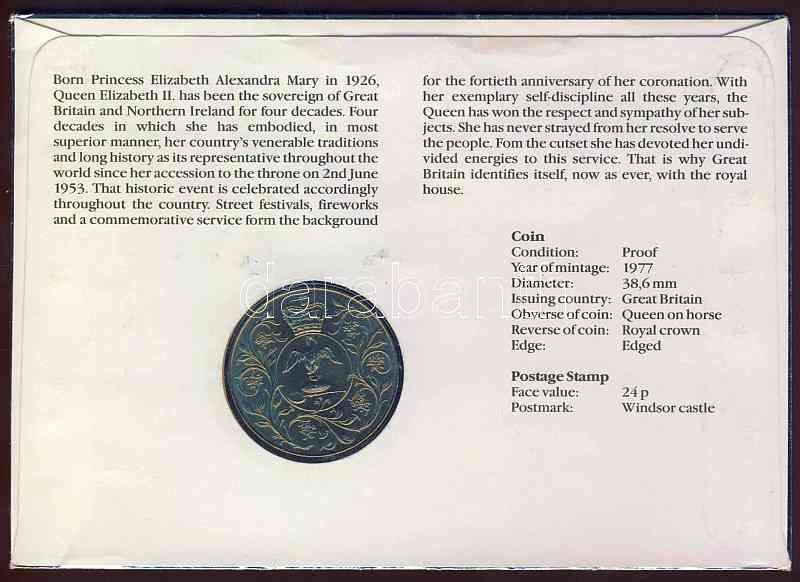 Beschreibung: Nagy-Britannia 1993. Erzsébet királynő megkoronázásának 40. évfodulójának alkalmából kiadott érmés boríték 1977-es 25P érmével T:BU