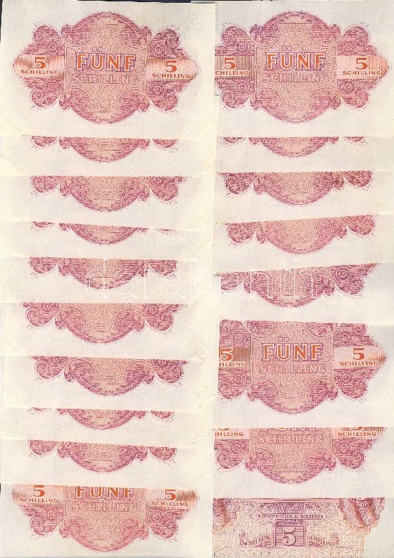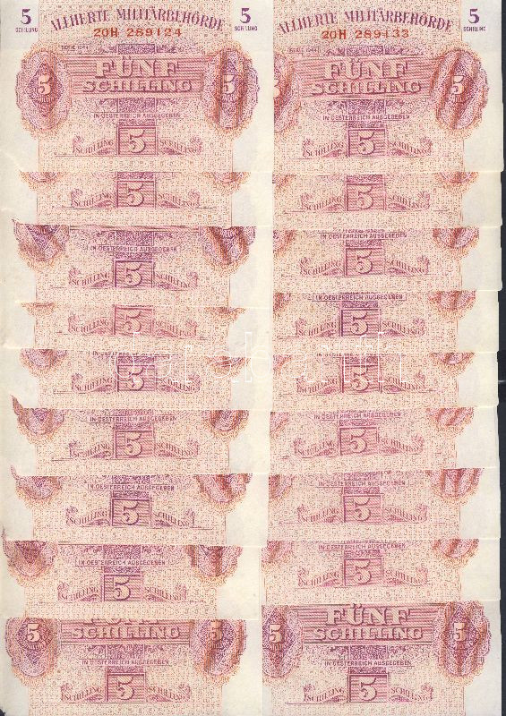 Beschreibung: Ausztria/nemzetközi megszállás 1944. 5Sch (18x) benne sok egymásutáni, ill. kevés ugrású sorszám T:sarokhibával egyébként I-