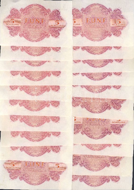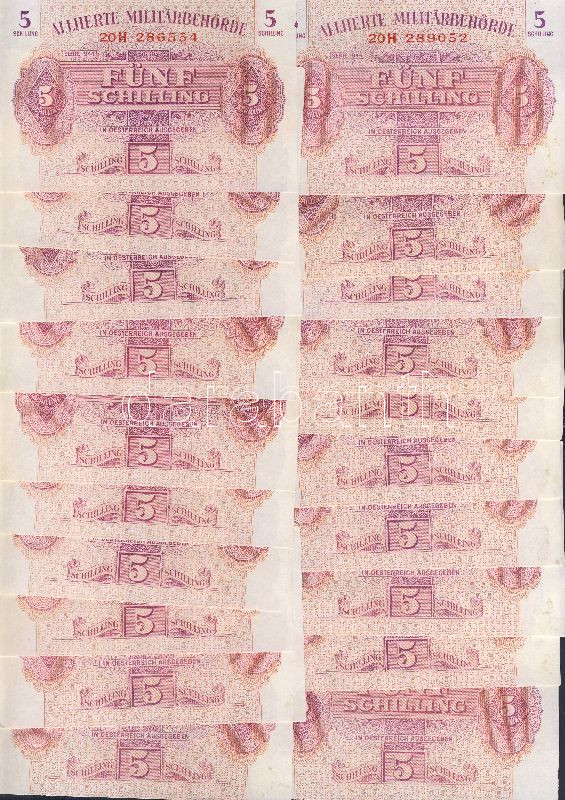 Beschreibung: Ausztria/nemzetközi megszállás 1944. 5Sch (20x) benne sok egymásutáni, ill. kevés ugrású sorszám T:I- pici sarokhibával vagy folttal