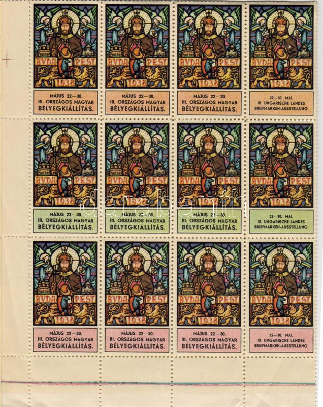 Beschreibung: 1938. Bélyegkiállítási levélzáró 40-es teljes ív benne klf. változatok