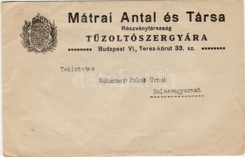 1900. Tűzoltógyári cégboríték, megcímezve, de nincs feladva https://www.darabanth.com/de/8-Fernauktion/8.0/Philatelie/~80/1900-Tuzoltogyari-cegboritek-megcimezve-de-nincs-feladva~II12283