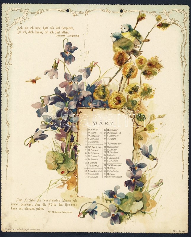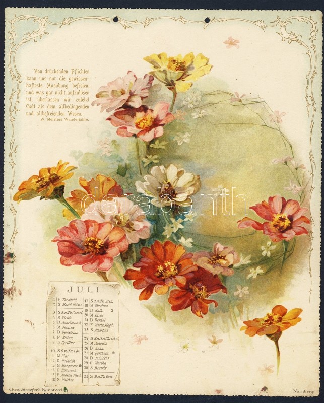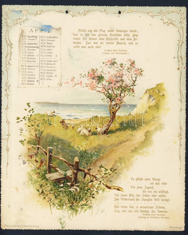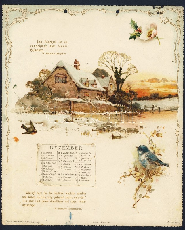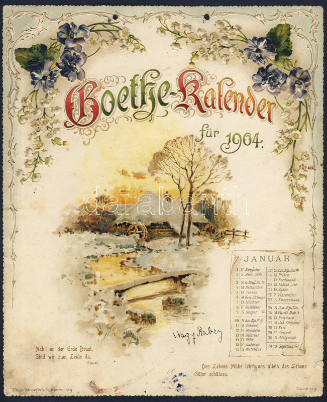 1904 Goethe kalendárium 12 db szép dombornyomott litho képpel 20x26cm ... https://www.darabanth.com/de/8-Gross-Auktion/8.1/Kunst-Dokumente/~2142/1904-Goethe-kalendarium-12-db-szep-dombornyomott-litho-keppel-20x26cm-Goethe-calendar-with-12-e~II205298
